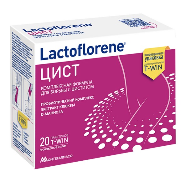 Итальянский пробиотический комплекс заботится о здоровье всей мочевыделительной системы в целом. В состав входят молочнокислые бактерии, экстракт клюквы CranPure с высоким содержанием проантоцианидинов и D-манноза. Применим при первых признаках инфекций мочевыводящих путей, а также для снижения риска их развития (рецидивов). Подходит для использования при посткоитальных эпизодах, дискомфорте при мочеиспускании и бессимптомных проявлениях ИМП (в частности, во время беременности). В упаковке 20 саше-пакетиков T-WIN (пробиотики отделены от остальных компонентов). Взрослым принимать по 1 пакетику в день (максимум до 3-х пакетиков в день), желательно вечером перед сном или утром на опорожненный мочевой пузырь.