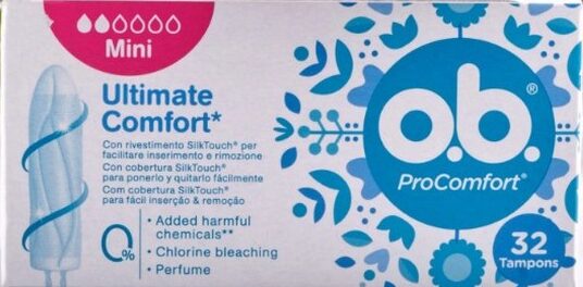 Этот товар от одного из крупнейших производителей гигиенических средств создан в соответствии со строгими немецкими требованиями к качеству. Он предназначен для обильных выделений при менструации, а также возникших вследствие хирургических операционных вмешательств, после которых не запрещено использовать тампоны. Верхний слой покрыт шелковистым материалом Silky comfort, что вместе с заостренным кончиком облегчает введение. Также он защищает поверхность от распушивания и попадания отдельных волокон на стенки влагалища. На наружной стороне размещено 8 желобков, направляющих влагу во внутренние слои. Основные материалы — впитывающее вискозное волокно, нетканый материал, полиэстеровый шнур. Индивидуальная упаковка выполнена из полипропилена. Не содержит красители, отдушки, парабены, спирт, хлор, хлорные отбеливатели. Средняя цена – 204 руб. (16 шт. в уп.)
