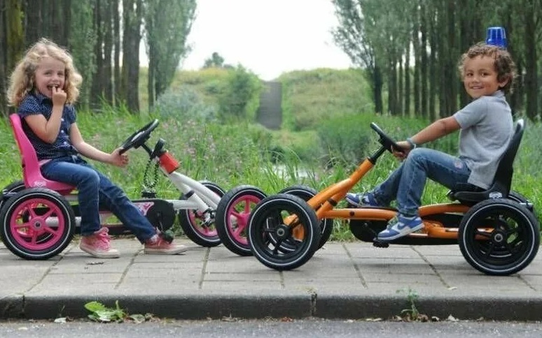 - Конструкцию и дизайн. На маркетплейсах можно найти машинки, стилизованные под гоночные картинги, самосвалы и тракторы с настоящими функциональными прицепами, в которых малыш сможет перевозить, скажем скошенную траву на даче или свои игрушки. Такие веломобили, кроме координации дополнительно развивают множество других навыков. Если выбираете веломобиль для маленького ребенка, то основной критерий выбора – простота и легкость конструкции. Особенно, когда машинка предназначена для малышей до 5 лет. Обратите внимание на легкость вращения педалей – катание должно приносить удовольствие, а не превращаться в тяжелую физическую тренировку. Для ребят от 9 лет можно рассматривать более конструктивно сложные модели, с несколькими скоростями и парой сидений вместо одного. У таких веломобилей стальной каркас, он более тяжелый, но при этом устойчивый даже на высоких (для веломобиля) скоростях.