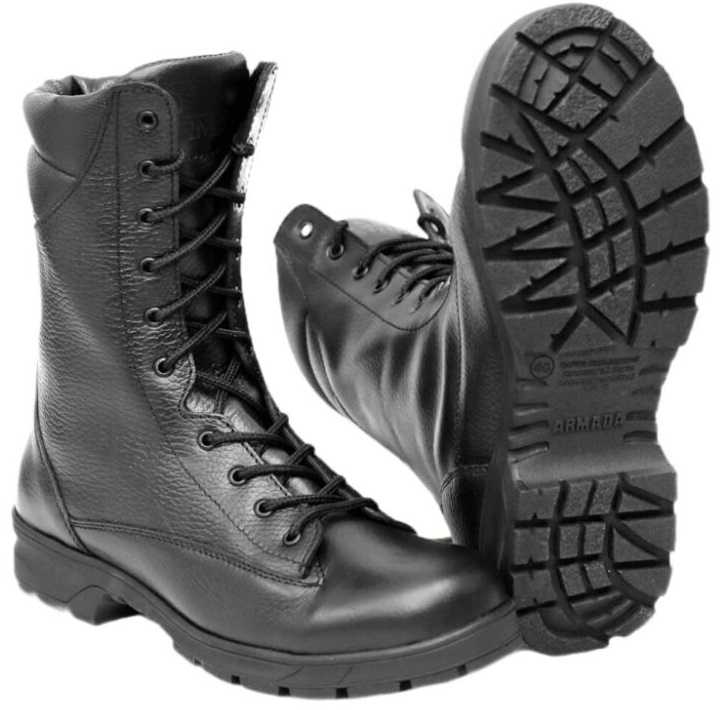 Берцы из натуральной кожи на полиуретановой подошве с анатомической стелькой. Застегиваются на молнию, ширина регулируется шнуровкой. Если судить по отзывам, ботинки качественные, удобные. Кожа плотная, хорошей выделки. Для тех, кому важно – подкладки нет. При заказе через маркетплейс, ориентируйтесь по размерной сетке продавца, поскольку описание в карточке и размер самого товара не всегда совпадают.