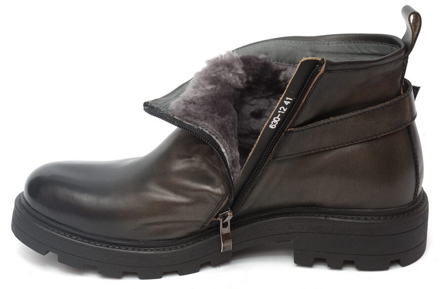 Модель без шнуровки, рассчитана на широкую ногу. Выполнена из натуральной кожи, меха, застегивается на молнию. Подошва – ТЭП, достаточно толстая, морозостойкая, не растрескается даже при сильных морозах. В точности соответствуют российской размерной сетке и описанию в карточке товара. Несмотря на массивный вид достаточно легкие, что обеспечивает комфорт при носке