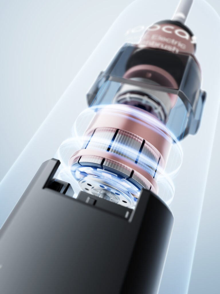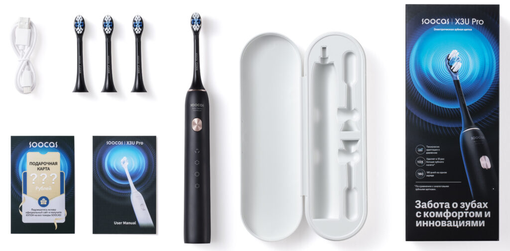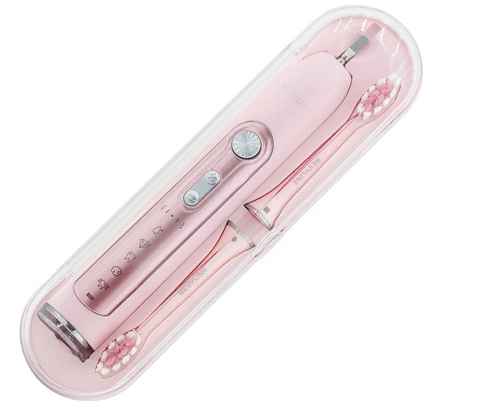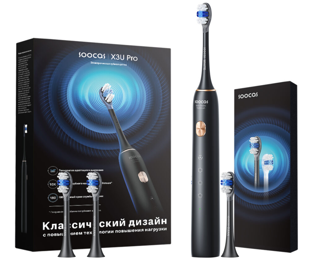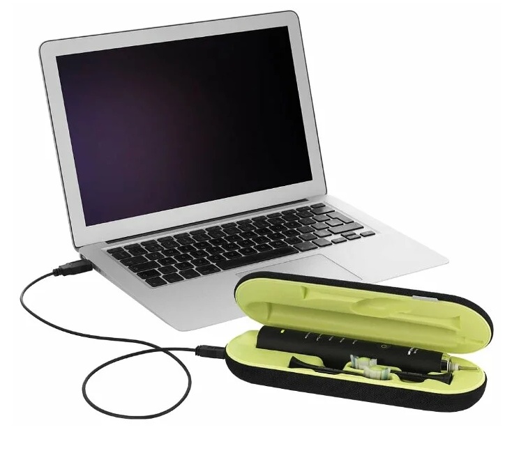 Набор из трёх насадок с портативным зарядным. Он имеет футляр для хранения и переноса, подставку с держателем для дополнительных насадок.  Индикация заряда батареи и износа щетины щётки оповещает о своевременной подзарядке/ замене соответственно. Присутствует датчик нажима на зуб, а также функция установки таймера. В зависимости от установленной головки, ведётся подсчёт звуковых вибраций.