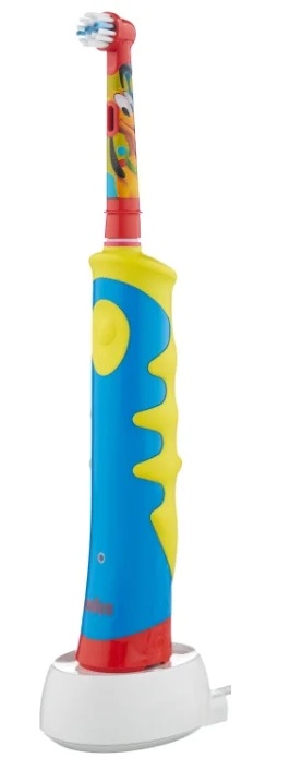 Прибор со стандартной насадкой для ежедневного использования с функцией синхронизации со смартфоном, таймером, индикацией заряда. Хранится на подставке. Имеются наклейки. Рукоятка адаптирована под ладонь малыша, прорезинена, не скользит в руке во время чистки.