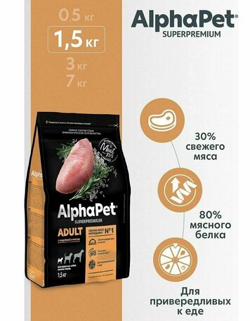 корм для привередливых собак AlphaPet, с индейкой и рисом для взрослых собак мелких пород Достоинства: