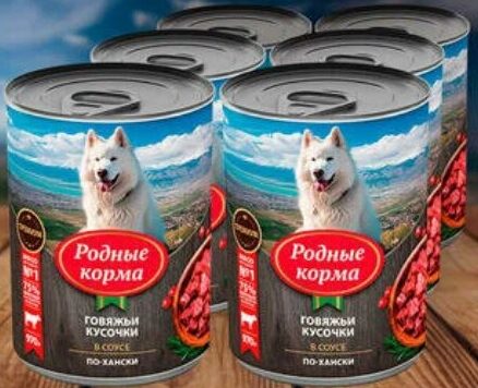 корм для привередливых собак Родные корма 970 г консервы для собак говяжьи кусочки в соусе по-хански 1х6 Достоинства: