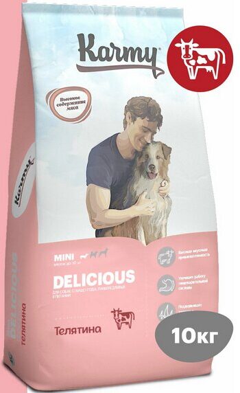 корм для привередливых собак Karmy Delicious Mini для собак мелких пород привередливых в питании Телятина 10кг Достоинства: