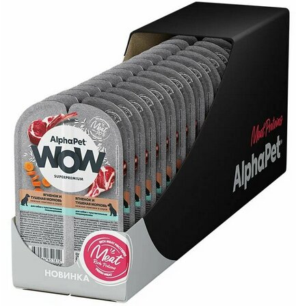 корм для привередливых собак AlphaPet WOW для собак с чувствительным пищеварением — Ягненок и тушеная морковь (ломтики в соусе, 15шт по 100гр) Достоинства: