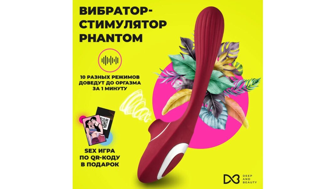 Вибратор для женщин 3в1 для клитора и точки G PHANTOM Deep&Beauty секс игрушки для девушек, 10 видов вибрации и стимуляции, виброяйцо, фаллос, стимулятор клиторальный Достоинства: