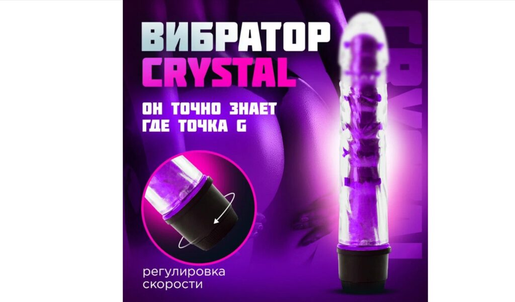 Вибратор женский CRYSTAL реалистичный с рельефом, фиолетовый 18 см. Вибромассажер для женщин Достоинства: