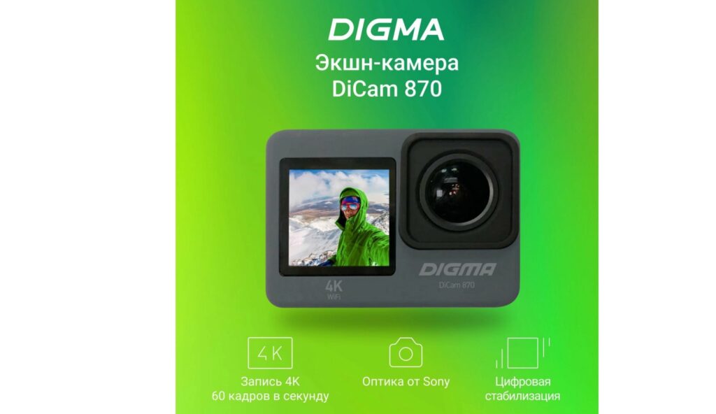 Digma DiCam 870 4K 3840×2160 электронный (цифровой) 900 мА·ч циклическая запись