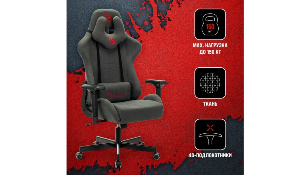 Игровое компьютерное кресло A4Tech Bloody GC-700 на колесиках, дышашая ткань , 3D подлокотники, крестовина металл, серый Достоинства: