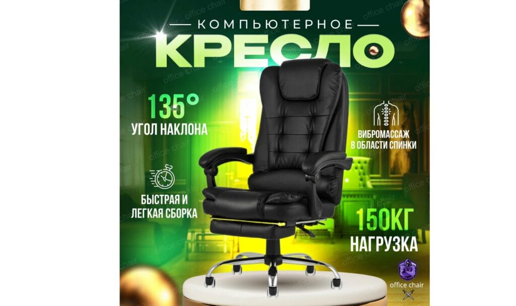Кресло компьютерное для руководителя с функцией вибромассажа для дома и офиса с подножкой из прочной эко-кожи Достоинства: