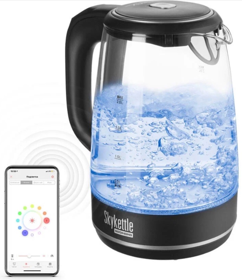 Умный чайник – это бытовой прибор для кипячения воды, работающий от электрического питания. Подключается через сети Wi-Fi или Bluetooth к системе умного дома либо с помощью приложения на мобильном телефоне. Такая технология позволяет управлять устройством, даже не находясь в помещении. В зависимости от заложенных функций можно регулировать уровень нагрева воды, время кипячения, включать/выключать подсветку и звуковое сопровождение и многое другое.