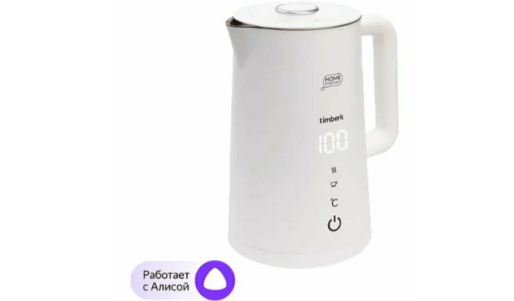 Чайник питается от нагревательного элемента на 2200 Вт, который скрыт для предотвращения образования накипи и продления срока службы устройства. В нем имеются вспомогательные опции, такие как поддержание температуры и функция таймера. Конструкция с двойными стенками не только повышает эстетическую привлекательность чайника, но и обеспечивает изоляцию, что позволяет вашему напитку дольше оставаться горячим. Одной из выдающихся особенностей Timberk T-EK21S103WF являются его интеллектуальные возможности. Вы можете управлять им с помощью смартфона, настраивать процесс приготовления из любого уголка квартиры. Он совместим с экосистемой «Умный дом Яндекса» и работает с Alice, что делает его идеальным дополнением к вашему «умному дому».