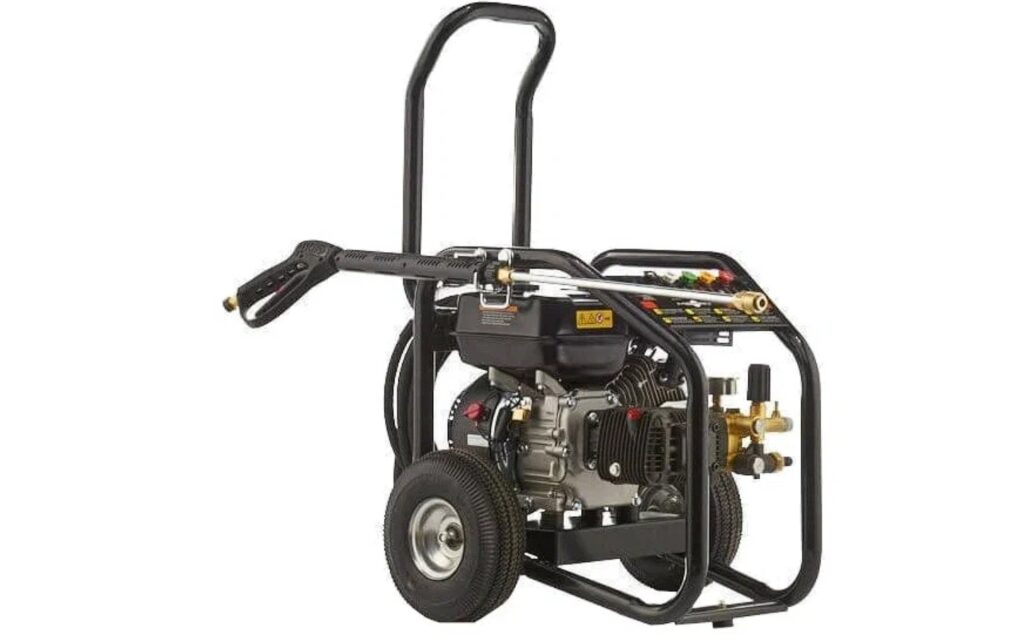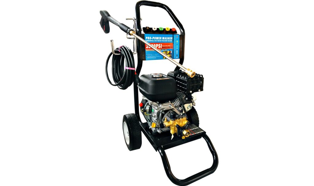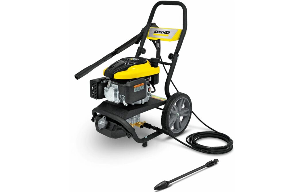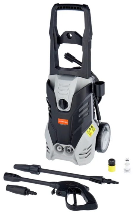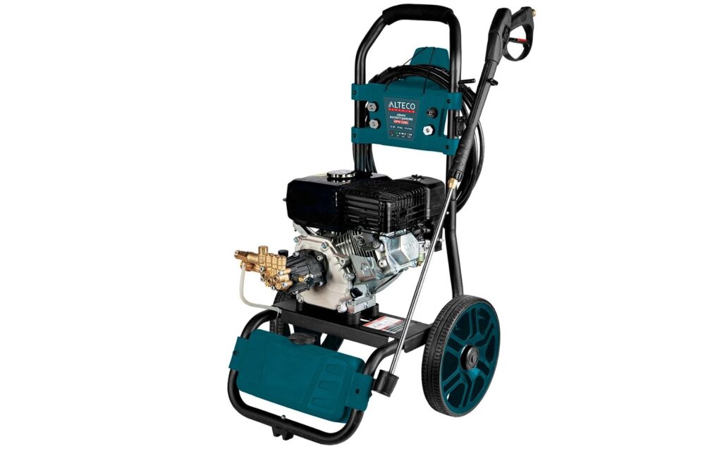 Прочная модель предназначена для мойки любых автомобилей или оборудования. Лёгкую перевозку по бездорожью обеспечивают большие надувные колёса и удобная рукоятка. Высокая производительность достигается мощным двигателем. Комплект содержит пять форсунок. Используется для мойки уличных объектов, чистки бассейнов, желобов или канав, ограждений или стен, а также мотоциклов и водного транспорта.