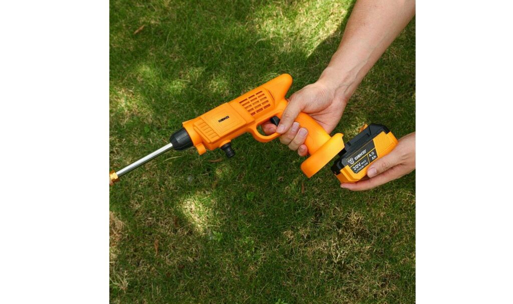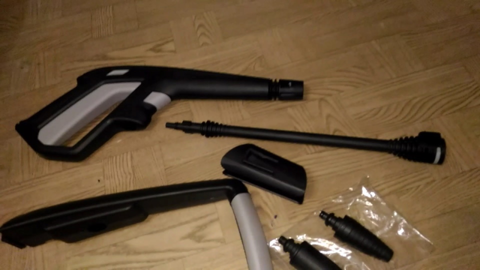 Моечный пистолет можно рассматривать как часть напорного шланга, потому что благодаря ему открывается или закрывается выход напора. Важнейшей задачей является предоставление оператору свободного доступа к поверхности мытья. У него должна быть вращающаяся головка, чтобы направить струю куда требуется.