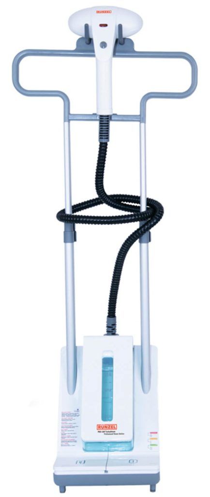 • изделие  вертикального типа. Имеет большие размеры и несколько насадок. Подходит для любого вида тканей. Для обработки ткани предмет одежды должен размещать на специальных плечиках и подвешиваться в вертикальном положении;