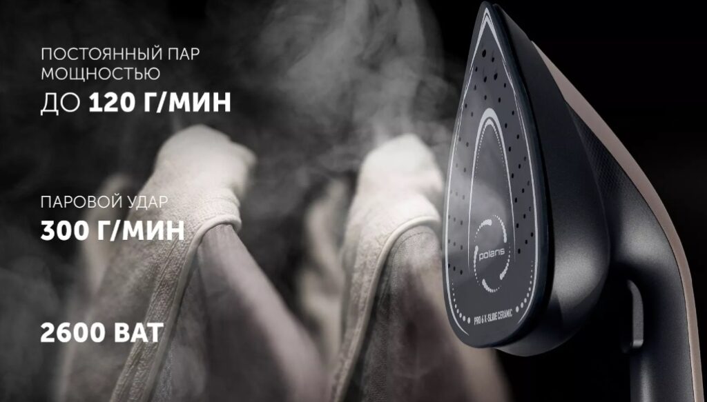 • Мощность 2400 Вт и давление 6.5 бар — устранение складок за 1 проход.
