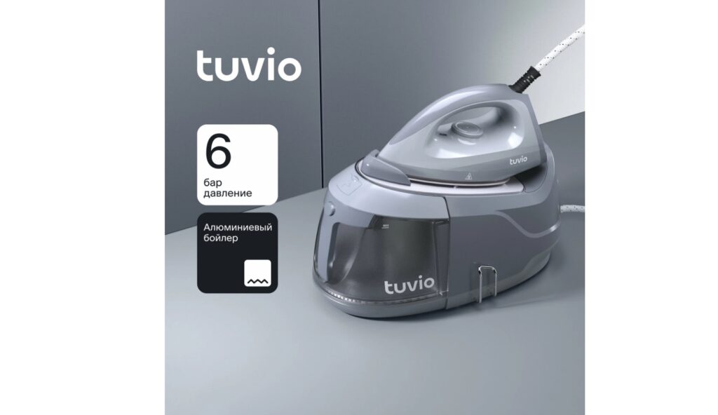 Парогенератор с алюминиевым бойлером, 6 Бар Tuvio TSS02B, серый Достоинства: