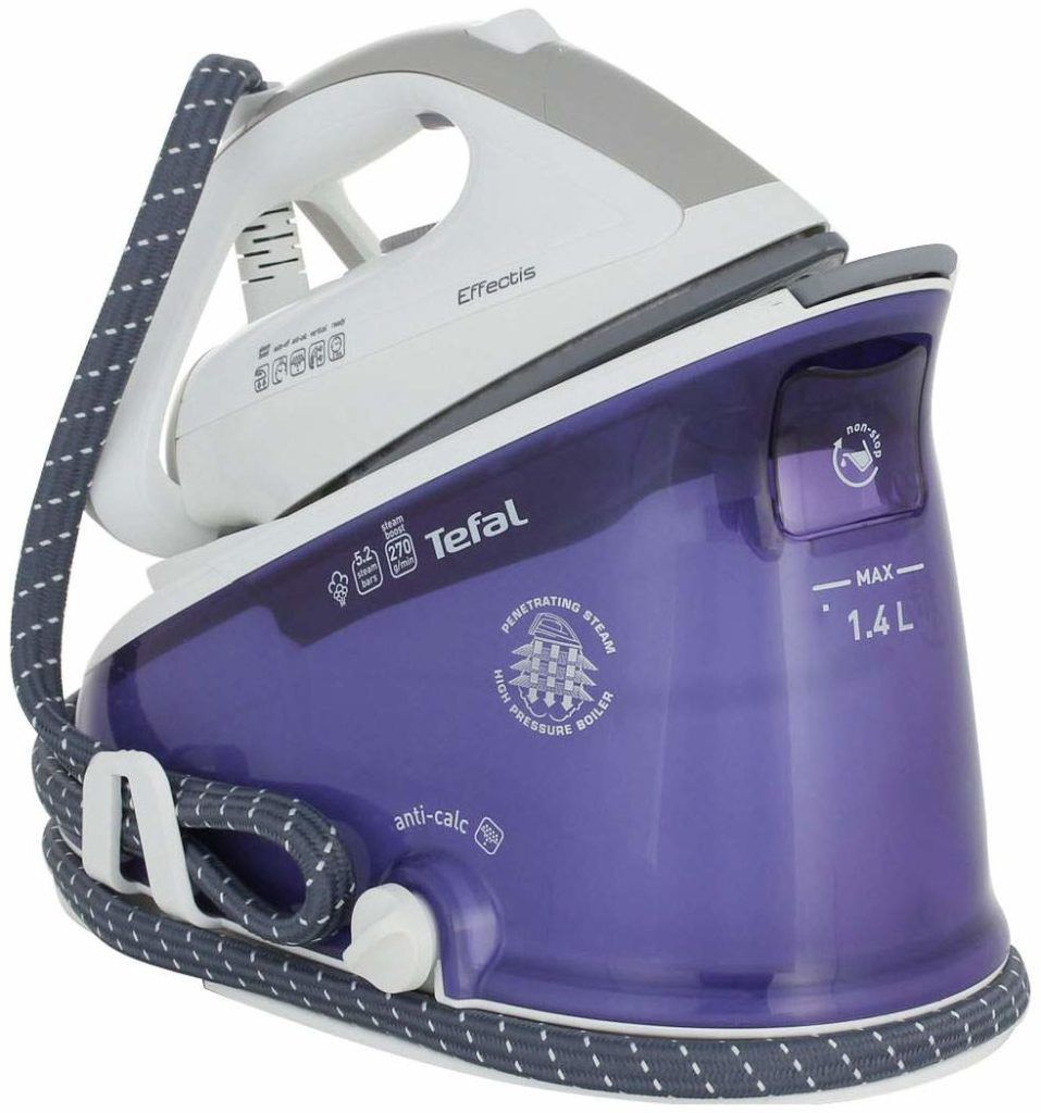 Модель парогенератора имеет небольшую стоимость и неоднократно доказывала свое качество. Изделие относится к комбинированным и может использоваться в качестве утюга. Противопригарное покрытие позволяет скользить по ткани, при этом не царапаться. Специальный резервуар для воды вмешает в себя 750 мл и может выполнять функции подставки. Также в приборе предусмотрен датчик, который оповещает пользователя о необходимости почистить устройство от накипи и долить воду. Парогенератор применяется для всех типов ткани.