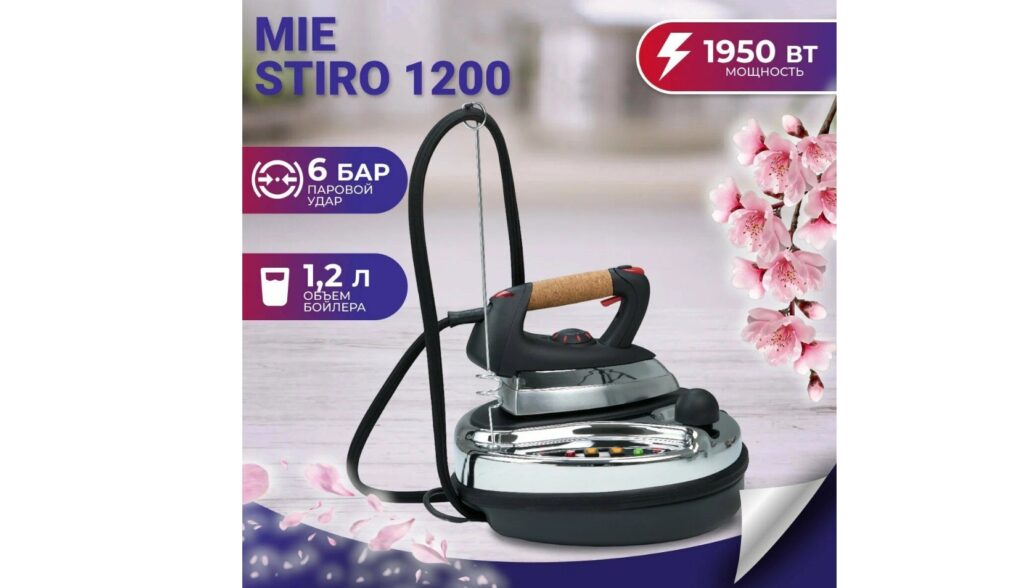 Парогенератор с пробковой ручкой MIE Stiro 1200, паровой удар 120г/мин, противокапельная система Достоинства: